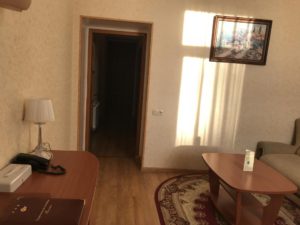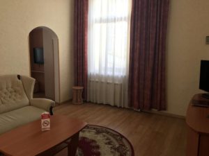 Двухкомнатные просторные номера с балконом, имеют современную мебель и оборудование, одна большая кровать с ортопедическим матрацем в спальне, в гостиной диван или мягкий уголок – дополнительное место, телевизор с плоским экраном (кабельное телевидение) в каждой комнате, холодильник, кондиционер, телефон (междугородная и международная связь), подключение высокоскоростного интернета.Санузел: ванная, умывальник, унитаз, биде.