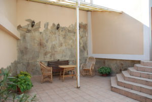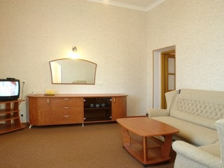 Гостиная: мягкая мебель, телевизор (кабельное телевещание), телефон (международная и междугородная связь), кондиционер, выход во внутренний дворик.