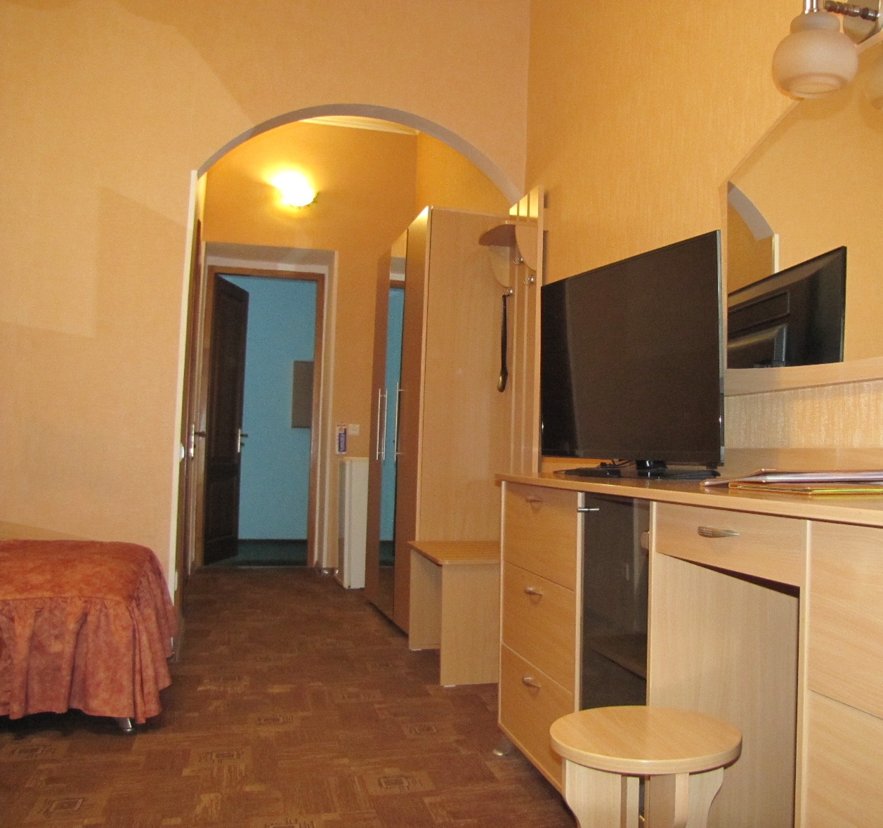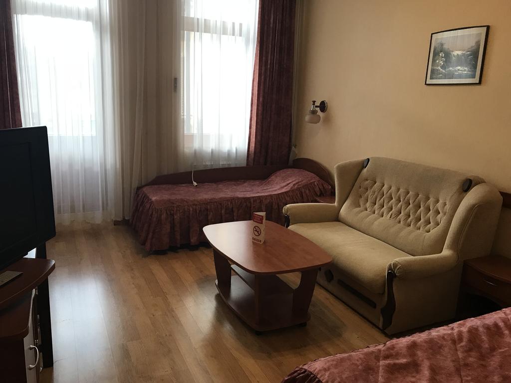 Двухместные просторные номера с балконом, имеют современную мебель и оборудование, две односпальные кровати с ортопедическим матрацем, а также диван – дополнительное место, телевизор с плоским экраном (кабельное телевидение), холодильник, кондиционер, телефон (междугородная и международная связь), подключение высокоскоростного Интернета. Санузел: ванная, умывальник, унитаз, биде.